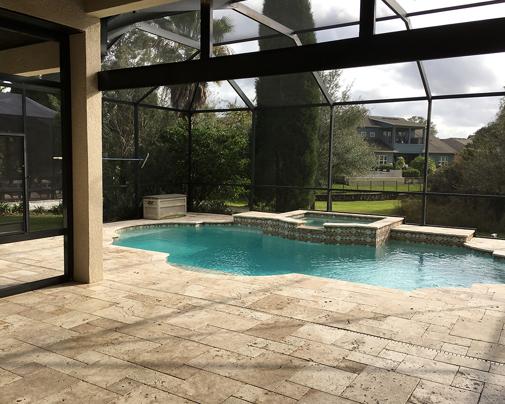 Ideal for homeowners in Tampa, Riverview, Sun City Center, and other Hillsborough County areas seeking a touch of luxury, our travertine installations elevate the aesthetic of any outdoor setting with unmatched beauty and resilience.